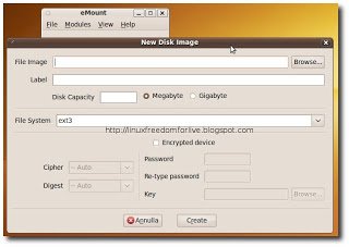 eMount è un’applicazione per montare, crittografare e gestire file immagine del disco, partizioni e supporti connessi quali pendrive o hd esterni ecc. L’applicazione si basa su cryptsetup, che implementa la specifica di crittografia del disco LUKS.