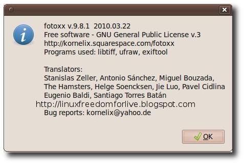 Fotoxx è un editor di immagini GTK+ per foto ritocchi veloci e creare panorami. Attraverso una semplice interfaccia possiamo interagire direttamente con l’immagine migliorandola come meglio vogliamo. Tra gli strumenti base, oltre ai soliti di “serie” come luminosità e contrasto, offre la possibilità di creare immagini HDR, immagini panoramiche, ridurre l’effetto Red Eye, ridurre l’intensità dei colori, eliminare il fastidioso effetto determinato dal rumore, correggere foto sottoesposte e tanto altro. In parole povere attraverso fotoxx abbiamo le basi per il foto ritocco.