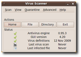ClamTK è una GUI, ossia un’interfaccia grafica, per il noto software antivirus per Linux ClamAV. ClamAV è infatti un software distribuito senza interfaccia grafica e, su Linux, può essere utilizzato solamente tramite istruzioni a riga di comando. Ciò ne limita molto l’uso e la configurazione. Con ClamTK invece si ha a disposizione una gradevole interfaccia basata sulle librerie GTK2 che permette di eseguire le azioni più importanti del software: configurazione delle opzioni, scansione del filesystem alla ricerca di virus, visualizzazione dei file messi in quarantena e così via.