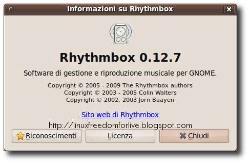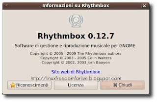 Rhythmbox è un lettore di file audio che legge ed organizza file musicali. Originariamente ispirato ad iTunes, è un programma gratuito, progettato per lavorare con il desktop GNOME, ed usa la piattaforma GStreamer. Supporta la riproduzione di un’ampia varietà di musica digitale. I più comuni file riprodotti sono quelli memorizzati nella Libreria, oltre che radio in streamig e podcast; è supportato lo standard Replay Gain. Si possono ricercare ed ordinare i file musicali presenti nella libreria, oltre che ordinarli in playlist (che possono essere dinamiche). Ai brani si può anche assegnare una votazione automatica, che sarà tanto più alta quante più volte si ascolta un brano.