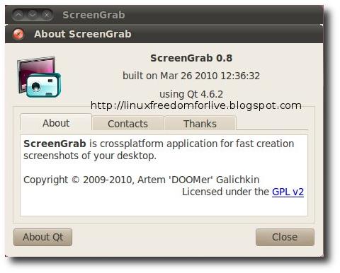 Screengrab è un’applicazione per catturare screenshots del nostro desktop. Il programma usa le librerie Qt ed è indipendente da qualsiasi ambiente desktop. L’applicazione permette ci catturare le immagini sia all’intero desktop, finestra attiva o per regine inoltre possiamo ritardarne la cattura da 0 a 90 secondi, le immagini possono essere salvare sia un Png che Jpeg. Tra le novità inoltre la possibilità di avviare l’applicazione nel tray e la possibilità di aggiungere nel nome la data e l’ora del salvataggio.