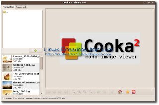 Cooka2 è un visualizzatore di immagini leggero, sviluppato con C in soli 900 righe di codice compresi i commenti ed è compilato con Mono Framework. L’applicazione ha il pregio di essere semplice, funzionale e intuitiva inoltre offre molte operazioni da tastiera (esempio si può ruotare l’immagine a destra di 90 gradi premdo S e cosi via). Supporta i principali formati grafici: PNG, JPEG, JPG, GIF, TGA, BMP, ICO, tiff, tif, ani, XPM, BMP, PNM, PBM, PGM, PPM, xbm, TGA e SVG. Al fine di gestire le immagini e per migliorare la visualizzazione delle immagini, Cooka fornisce una barra degli strumenti semplice che permette agli utenti di eseguire alcune operazioni di base come la rotazione, lo zoom, impostare come sfondo.