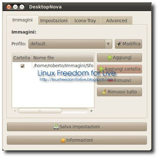 DesktopNova (ex gWallpapers) è una semplice applicazione attraverso la quale possiamo cambiare lo sfondo del desktop automaticamente in un dato intervallo di tempo o all’avvio del sistema operativo. L’applicazione funziona attualmente solo su un sistema di GNOME e Xfce.