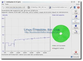 DVDisaster è un’ottima applicazione che fornisce un margine di sicurezza contro la perdita di dati su supporti CD e DVD causata da graffi o dall’invecchiamento dei supporti. Crea dati per la correzione di errori che sono usati per recuperare i settori non leggibili se il disco diventa successivamente danneggiato. L’utilizzo è molto intuitivo; grazie ad una comoda interfaccia grafica (GUI) possiamo facilmente eseguire le tre operazioni di base: Leggi, Crea e Ripara. DVDisaster lavora a livello di file immagine e non a livello di file system: nella prima fase (Leggi) si preoccupa di generare un file ISO (medium.iso), poi crea un file contenente le informazioni per la correzione degli errori. Questa è sicuramente la fase più delicata, perché solo se il programma riesce a generare il medium.ecc possiamo poi riparare il nostro disco. Il risultato finale è un file ISO “restaurato”, pronto per essere masterizzato nuovamente (con altri programmi) o montato come file immagine.