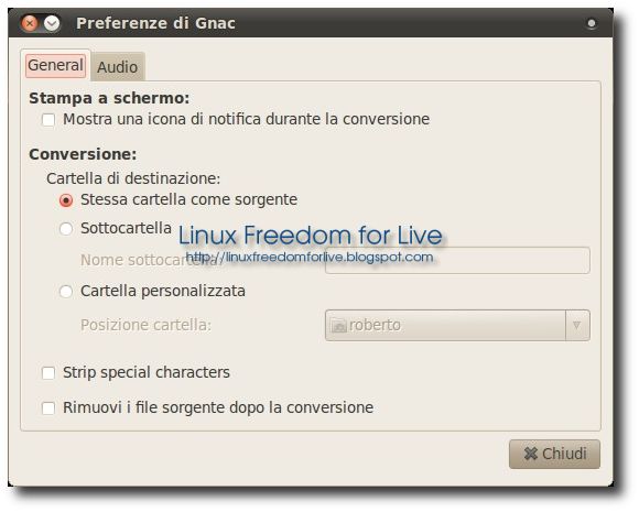 Gnac è un’ applicazione che ci permette di convertire file audio in diversi formati, tra cui MP3, Ogg Theora, FLAC, WAV ed anche altri, a partire da un altrettanto vasto elenco di formati di origine. La conversione avviene in maniera del tutto automatica, una volta selezionati i brani da convertire ed il formato di uscita, ed impiega un tempo ragionevolmente breve.