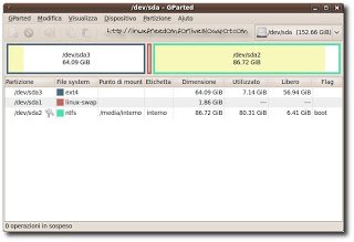 GParted “Gnome Partition Editor application” è un’applicazione che consente di modificare le partizioni presenti sul nostro Hard Disk, preservando i dati presenti nelle partizioni stesse. L’applicazione è in grado di creare, distruggere, ridimensionare, spostare, verificare e copiare le partizioni ed i file system presenti su di esse. Può dunque essere utilizzato per creare spazio per nuovi sistemi operativi, per riorganizzare lo spazio sul disco, per copiare i dati presenti sugli Hard Disk e per realizzare mirror di una partizione. L’approccio generale è di tenere l’interfaccia grafica quanto più semplice possibile.GParted è un’applicazione da usare con molta cautela mi raccomando.