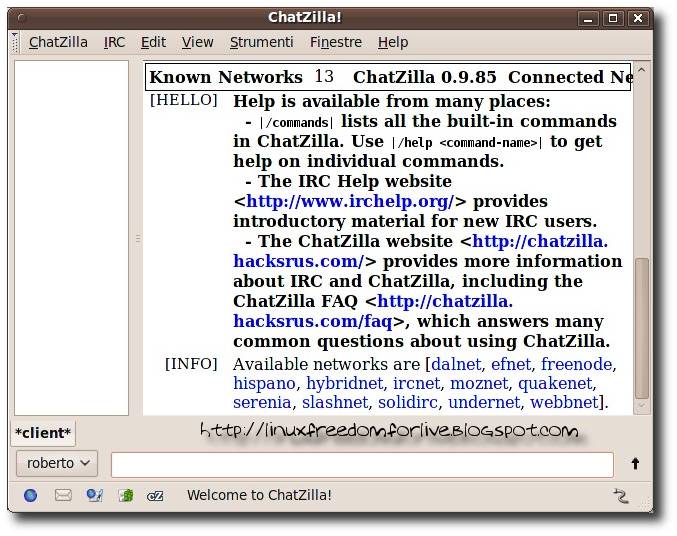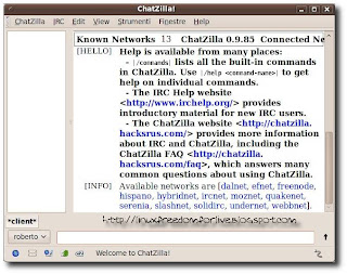 Possiamo inoltre dialogare sulle reti IRC con questo semplice quanto potente client IRC. Reti e canali multipli sono facilmente gestibili attraverso una familiare interfaccia a schede.