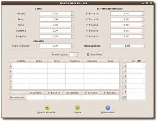 QVS-Qt (Quanto Vinco Se…) è una semplice applicazione, scritta in PyQt4, per calcolare le vincite del lotto. L’applicazione è semplicissima basta inserire la somma che si vuole puntare su ambo, terno ecc e avremo il totale che avremo vinto in caso di vincita.
