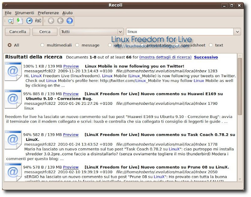 Recoll Ottima Applicazione per La Ricerca a Tutto Testo 1.13.04