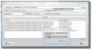 Konvertible è un’applicazione per convertire file audio in altri formati audio con ffmpeg. L’utilizzo è semplicissimo, avviamo l’applicazione e scegliamo i nostri file da convertire cliccando su Add Files , scegliamo la cartella di destinazione ed infine il codec, estensione, ecc che vogliamo e clicchiamo su Convert.