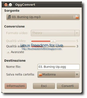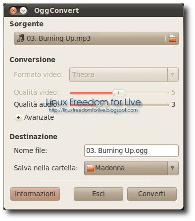 OggConvert è una semplice applicazione che utilizza GStreamer per convertire qualsiasi file multimediale nei formati liberi Ogg Vorbis, Theora e Dirac.
