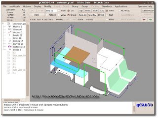 gCAD3D è un’ottima applicazione CAD CAM 3D con un viewer integrato OpenGL.