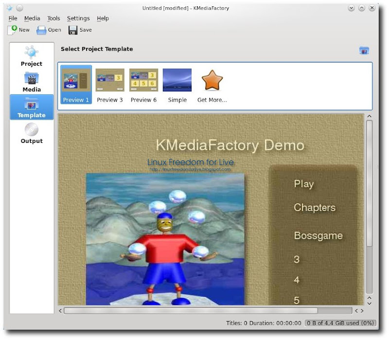 Kmediafactory è un’applicazione, specifica per Kde, per creare con molta facilità Dvd Video con Menu dai nostri filmati. L’applicazione permette l’importazione di video nei formati MPEG e AVI, la creazione di menu e capitoli e la registrazione del DVD (tramite K3B). Tra le principali caratteristiche troviamo la possibilità anche di importare Pdf o ODP e creare un video slideshows.