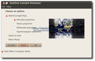 Realtime Sunlight Wallpaper è un’applicazione semplice ma utile, che può recuperare un’immagine da Internet e impostarla come sfondo ogni 30 minuti. Potremo vedere sorgere e tramontare il sole in tutto il mondo e tutto questo in tempo reale.
