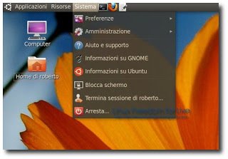 Dalla versione 9.10 Karmic Koala Ubuntu ha aggiunto l’ Indicatore di Sessione togliendo difatti le “classiche” icone Blocca Schermo, Termina Sessione e Arresta dal menu.