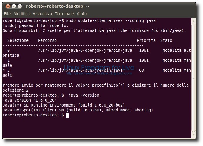 1 /usr/lib/jvm/java-6-openjdk/jre/bin/java 1061 modalità manuale