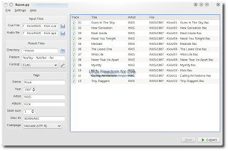 Flacon è un’ottima applicazione per convertire/modificare/gestire file musicali da interi album musicali. Possiamo convertire i nostri cd o file WAV, FLAC, APE, WV in FLAC, WAV, OGG e MP3 e nello stesso tempo modificarne i tag sia su singoli file che per l’intero album.