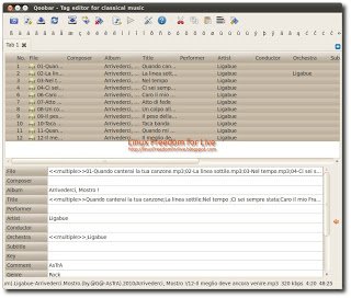 Qoobar è una semplice applicazione per editare manualmente i tags dei propri files musicali; correggere e completare automaticamente i tags dei propri files audio. Utilizzare l’applicazione è molto semplice basta cliccare su “Add Directory” e selezionare i file o un’intera cartella, tutti i file da noi scelti verranno visualizzata nell’apposito spazio, ora possiamo modificare o ciascun file o tutti insieme, Per Salvare le nostre modifiche sui file basta cliccare su “Rename Files” ed ecco i nostri tag modificati.