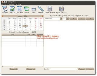 qOrganizer è un organizzatore generico che include un calendario con agenda, avvisi, diario/appunti del giorno e lista di cose da fare.
