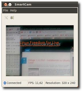 ora avviamo l’applicazione da Ubuntu andando su Applicazioni -> Audio e Video -> SmartCam e clicchiamo su File -> Settings e selezioniamo se utilizzare il Bluetooth o TCP/IP.