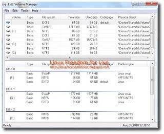 Questo è un post un pò insolito per i lettori del blog dato che parliamo di un programma per Windows, però oggi ho avuto un lettore che mi chiedeva come far riconoscere a Windows (Xp / Vista / 7) le partizioni Linux. Un semplice esempio: abbiamo il nostro pc con Ubuntu e Windows 7. Su Ubuntu possiamo tranquillamente navigare nella partizione Ntfs, grazie al driver Ntfs-3g, ma nel caso contrario su Windows non riusciamo a rilevarne le partizioni Ext2 / Ext3 e Ext4.