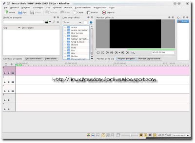 Kdenlive (acronimo di KDE Non-Linear Video Editor) è un’ottima applicazione specifica per l’elaborazione video non lineare per il desktop KDE. Kdenlive presenta una pratica interfaccia grafica (sviluppata per l’ambiente desktop KDE 4) molto familiare a chi già conosce i più blasonati software commerciali di video editing in ambiente Win.