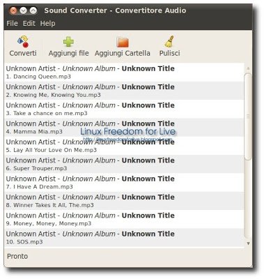 Soundconverter è una semplice applicazione, specifica per Gnome, per convertitore file audio nei più diffusi formati. L’applicazione permette di convertire qualsiasi formato audio supportato da GStreamer nei pià diffusi formati quali Ogg Vorbis, FLAC, o in formato WAV o MP3 se dispone del plugin GStreamer LAME. Usarlo è molto facile basta cliccare su “Add File” e selezionare i file da convertire, clicchiamo su Edit -> Preferenze e selezioniamo la cartella dove verranno estratti i file convertiti e il formato da convertire ora non ci resta che cliccare su “Converti”. Inoltre l’applicazione permette di convertire il contenuto di intere cartelle, avendo così modo di convertire, in un solo colpo, diversi file in un unico formato.