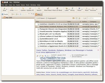 Per installare RSSOwl 2.0.5 su Ubuntu 10.04 Lucid basta consultare in QUESTO articolo