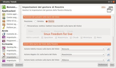 Se vogliamo riportare alla “normalità” possiamo utilizzare svariate applicazioni, la più semplice e diffusa è Ubuntu Tweak, la quale oltre a spostare i pulsanti permette anche la personalizzazione.