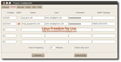 Possiamo utilizzare Popper su qualsiasi server di posta elettronica, permette di personalizzare il tempo di aggiornamento, e il suono d’allarme in caso di nuove email.
