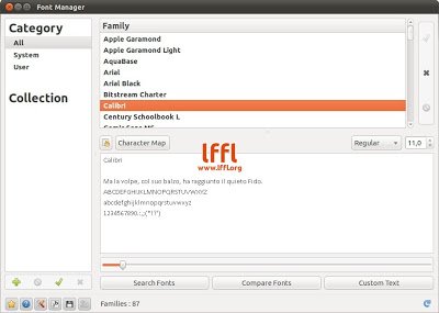 Come ben sappiamo Ubuntu offre di default una serie limitata di font (inoltre dalla 10.10 Maverick è disponibile anche il nuovo font “ubuntu”). Possiamo comunque aggiungere molti altri font alla nostra Distribuzione, molto indicato è aggiungere anche i font Microsoft dal pacchetto ttf-mscorefont per migliorare la leggibilità su certi siti. Inoltre ieri il mio amico/collega Alfredo mi ha mandato una cartella contenete i principali font di Windows Vista, 7 e Mac. Ecco quindi come fare a installare i font su Ubuntu e tutti in un colpo solo.