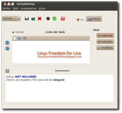 Per chi non la conoscesse LuckyBackup è un’applicazione con il quale possiamo creare backup/ripristino o sincronizzare file/cartelle nella nostra Distribuzione. Il vantaggio rispetto ad altri software per il backup è (oltre che dalla sua semplice interfaccia) la sua capacità di mantenere i nostri dati al sicuro attraverso un sistema nominato rsync. I nostri dati saranno salvati prima di procedere in qualsiasi manipolazione quindi in caso di cancellazione o errore di sistema potremo sempre ripristinare il tutto con un semplice click.