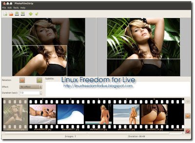 PhotoFilmStrip è un ‘applicazione che ci permette di creare filmati di ottima qualità a partire da fotografie, il tutto in modo semplice e veloce, con inoltre la possibilità di poter aggiungere effetti di vario genere e colonne sonore di sottofondo. Una volta installata l’applicazione avviamola recandoci su Applicazioni -> Audio e Video -> PhotoFilmStrip ora possiamo cliccare sull’icona “+” per aggiungere le nostre foto, se le abbiamo in una cartella basta andate su Tool -> Import Pictures e selezioniamo la cartelle con le nostre foto. Ora dobbiamo selezionare gli effetti che abbiamo intenzione di applicare, determinare alcune piccole impostazioni come ad esempio lo zoom, aggiungere un eventuale musica di sottofondo ed infine esportare il video ottenuto su DVD, XviD o uno degli altri formati supportati, HD incluso.