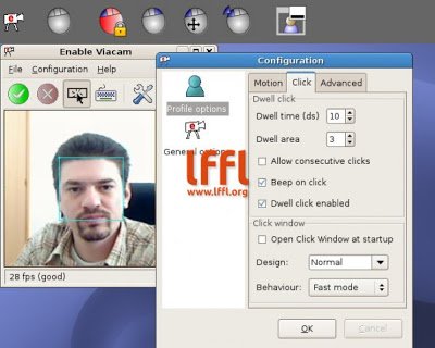 Il click viene generato quando il cursore rimane fermo per più secondi nel medesimo posto, ma l’intervallo di tempo è configurabile. eViacam è scritto in C++ e rilasciato sotto licenza GPLv3