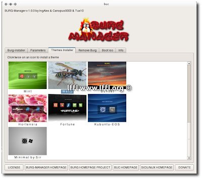 Burg-Manager consente l’installazione del PPA e di Burg direttamente con un click, quindi non occorre usare il terminale; inoltre consente di bootare le ISO di molti sistemi operativi, senza dover neppure masterizzare un cd o creare una pendrive avviabile (quindi avere decine di distro live da poter avviare come e quando si vuole, senza ad es. Virtualbox)