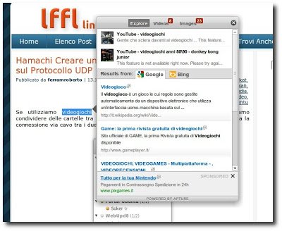 Apture Highlights è una semplice estensione che una volta installata all’interno del nostro browser web preferito, ci permetterà di ottenere velocemente tutte le informazioni relative al termine evidenziato andando ad attingere ai dati presenti su Wikipedia, Twitter, YouTube e molto altro ancora, in modo tale da fornire a ciascun utente un insieme di informazioni complete e soddisfacenti.