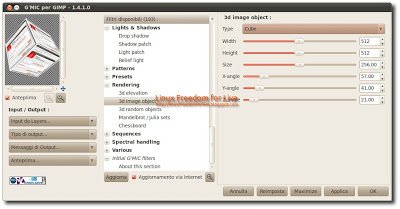 Nuova release per G’Mic GREYC’s Magic Image Converter, fantastico plugin per Gimp, il quale ci permette di utilizzare oltre 190 filtri sul nostro Gimp. Gli effetti che potremo dare alle nostre immagini sono sbalorditivi, possiamo creare cubi, piramidi, sfocare in molte maniere le nostre immagini e altro ancora.