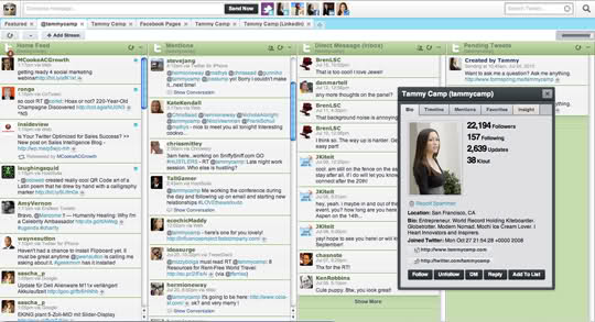 HootSuite è il client da interfaccia web per Twitter, Facebook, Linkedln, Foursquare, WordPress ecc che consente di gestire uno o più account in maniera assolutamente completa, quindi senza dovere ogni volta passare dal sito di questa o quella applicazione.