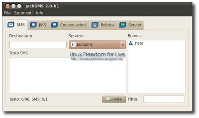 JackSMS una delle più diffuse e migliori applicazioni per inviare SMS gratis da Ubuntu sfruttando internet, semplice da usare e completamente gratuito.