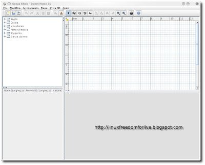 Sweet Home 3D è un’ottima applicazione, sviluppata in Java, la quale permette di progettare una abitazione definendo i muri perimetrali e la posizione di porte e finestre tramite un semplicissimo editor grafico. E’ inoltre possibile arredare l’abitazione tramite un set di mobili (letti, armadi, tavoli, sedie, divani…) e oggetti tipici di una abitazione (televisori, piante, pianoforti…).