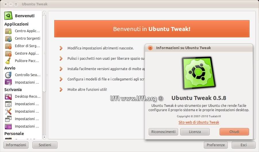 Per installare/aggiornare Ubuntu Tweak 0.5.8 su Ubuntu 11.04 – 10.10 – 10.04 – 9.10 basta aprire il terminale e digitare quanto segue: