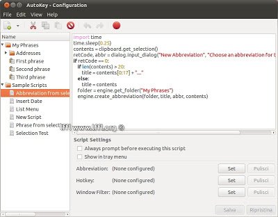 Per chi non la conoscesse AutoKey è un’applicazione che permette agli utenti di automatizzare le operazioni ripetitive con diversi combinazioni di tasti e mouse o joystick e di modificare l’aspetto delle finestre e cambiare stili. Permette inoltre di gestire le attività di raccolta di frasi o di altri testi, e di assegnare tasti di scelta rapida e abbreviazioni a queste frasi che ci permette di inserire su richiesta in qualsiasi programma che si sta utilizzando.