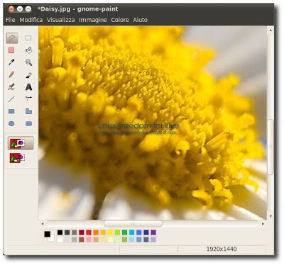 Gnome-Paint è un semplice applicazione specifica per disegnare ispirata a MS-Paint, grazie al quale possiamo disegnare, colorare e modificare immagini. È possibile utilizzare Gnome-Paint come un blocco per schizzi digitale per creare immagini semplici e progetti creativi oppure per aggiungere testo ed effetti grafici ad altre immagini, ad esempio a quelle acquisite con la fotocamera digitale. Alcuni strumenti, come la matita, il pennello, la linea e la curva, consentono di creare una vasta gamma di linee rette, curve e ondulate; altri invece come il rettangolo e l’ellisse, consentono di aggiungere forme al disegno.