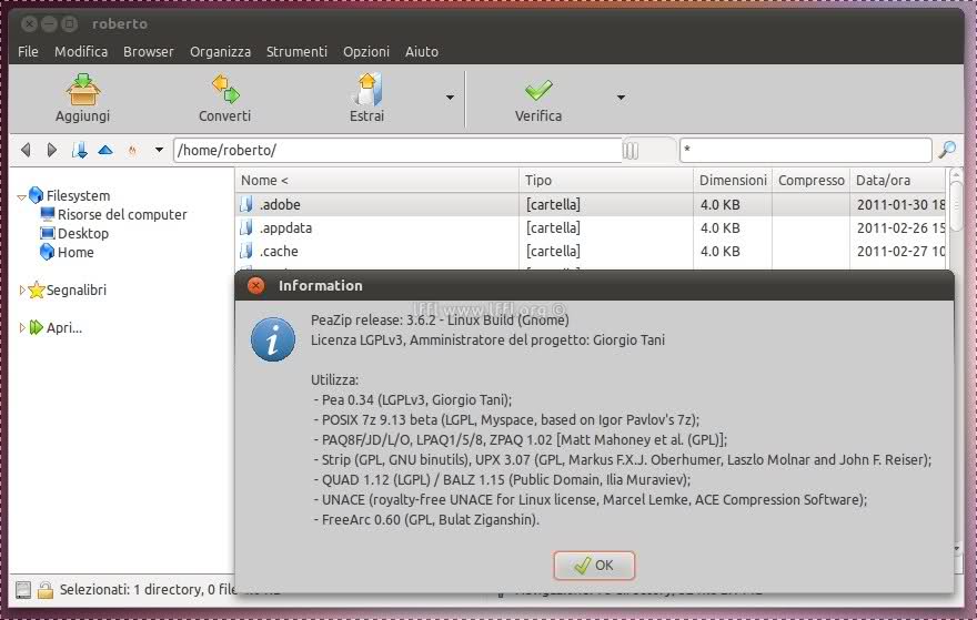 Anche se nella nostra Distribuzione troviamo già presente File Roller o altre applicazioni specifiche per comprimere o decomprimere i file il problema rimane la compatibilità con i numerosi formati. Difatti capita molto spesso di non poter estrarre un file causa mancanza di supporto per quell’estensione. Per evitare tutto questo possiamo installare un’applicazione che supporti moltissimi formati, questa è PeaZip.