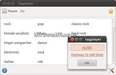 TagPlayer, un nuovo player audio minimale che ci permette di ascoltare la nostra musica dalla nostra collezione utilizzando i tag Last.fm. Semplicissimo da utilizzare, una volta installato avviamolo da Applicazioni > Audio e Video > TagPlayer scegliamo l’icona preferenze e selezioniamo la cartella contenente i nostri file audio e inseriamo il nome utente e la password Last.fm.