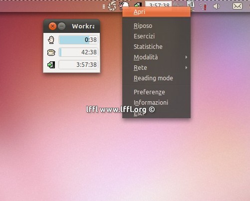 Una volta avviata troveremo un’ icona nella system tray con la quale potremo impostare i vari intervalli di tempo e i movimenti da eseguire durante le pause. Una volta impostati Workrave ci avviserà con dei pop-up indicandoci la possibilità comunque di posporre o saltare la pausa indicata e addirittura, nei casi più critici, di bloccare schermo, rete, mouse e tastiera. WorkRave, inoltre, offre una precisa gamma di statistiche della nostra attività al computer per esempio quante volte abbiamo cliccato sul mouse, quanti tasti abbiamo battuto, quante pause hai fatto ecc.