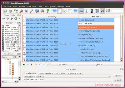Hamsi Manager è un semplice file manager per rinominare, modificare tag id3 e cambiare informazioni a file musicali. Inoltre permette anche la riproduzione del file e permette di creare/modificare playlist.