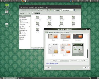 Al termine avremo Sonar’10 installato non ci resta che andare in in Sistema -> Preferenze -> Aspetto a nel tab Tema scegliere il tema Sonar.