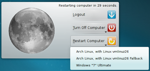 Sa abbiamo avviato Kde e vogliamo riavviare per utilizzare un’altro Sistema Operativo dal tasto riavvio avremo anche l’opzione di scegliere quale sistema operativo avviare dopo il riavvio, una volta scelto al boot partirà in automatico, il tutto va a beneficiare nei tempi d’avvio.