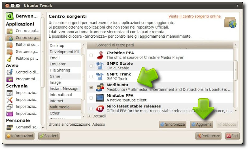 Se utilizziamo Ubuntu possiamo facilitarci l’integrazione dei nostri repository grazie a Ubuntu Tweak